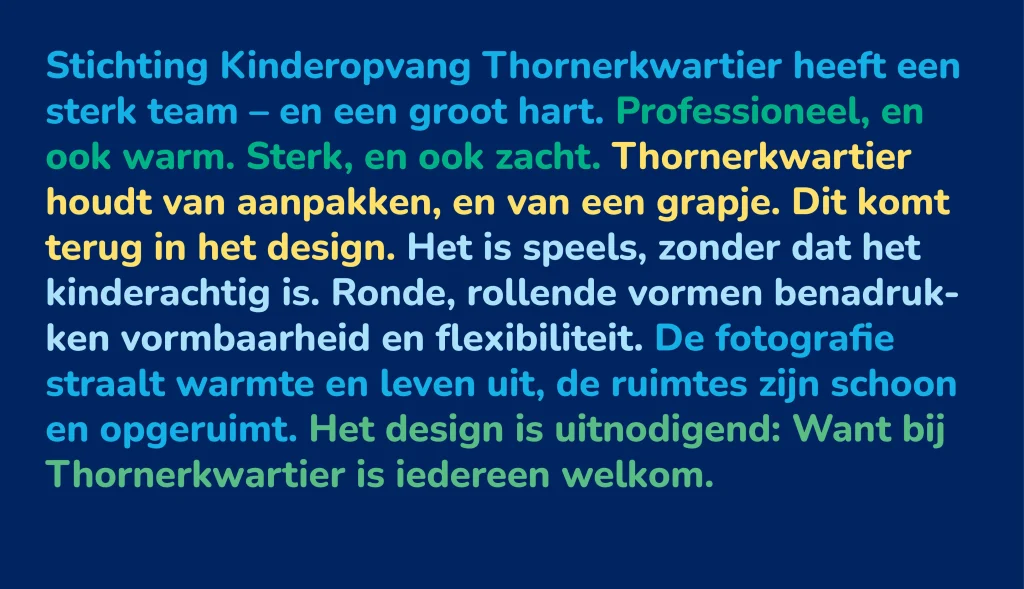 Initial reactions from staff and customers have been overwhelmingly positive. Thornerkwartier has gone from an abstract collection of employees and rooms, to something which has a face and an identity.